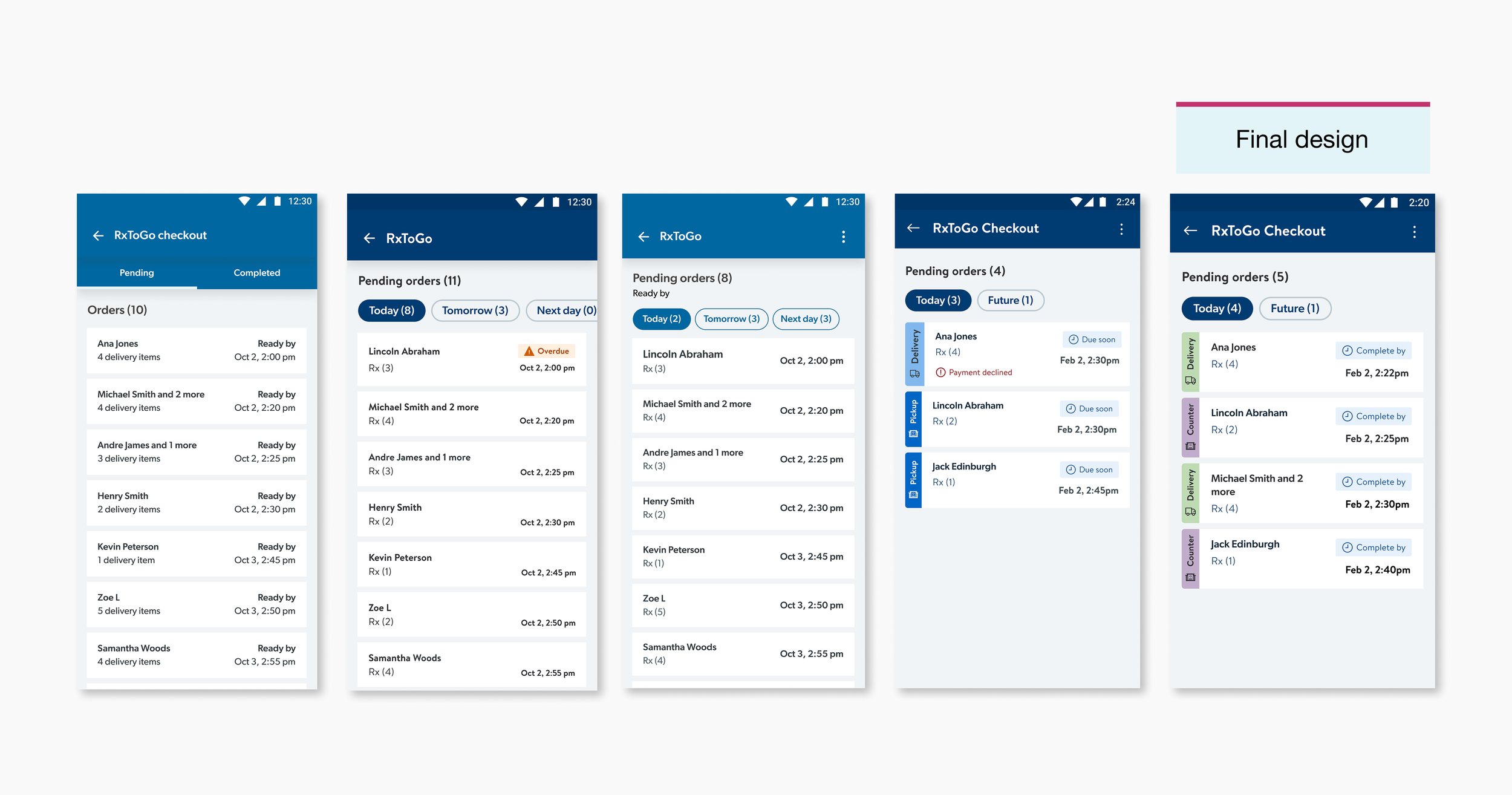 Explored expedited counter pickup and curbside opportunities through vision workshops. Dynamic checkout product enabled quick turnaround for other dispensing methods.